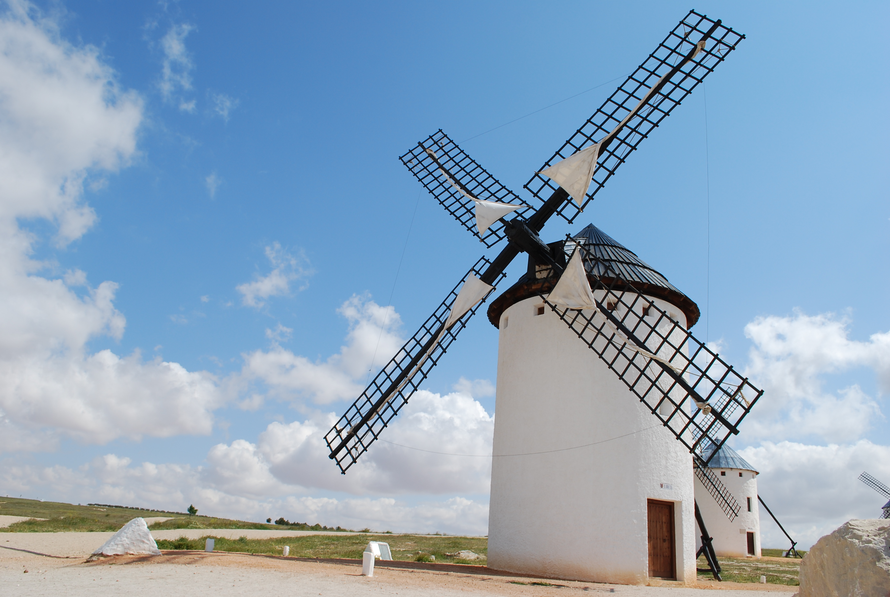 マドリッドの南ラ・マンチャ(La Mancha)地方は、ドンキホーテと風車でも知られる広大な地域で、スペイン全体の約半分のワインがこの地域で生産されますが、その多くはテーブルワインです。長年過小評価されてきましたが、最近では輸出が増え、この地方のワインは内外で評価を高めつつあります。